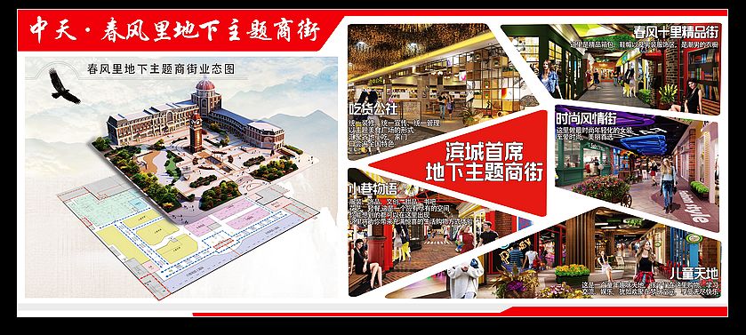 中天?春風(fēng)里地下主題商街以時(shí)尚、現(xiàn)代、高科技為標(biāo)配,引入新奇特商品,創(chuàng)造獨(dú)具想像力的購(gòu)物空間,經(jīng)營(yíng)面積1.1萬(wàn)平米,是集吃、喝、玩、樂、購(gòu)+高科技體驗(yàn)于一體的超大地下商業(yè)航母,分為“吃貨公社主題餐飲區(qū)、動(dòng)感地帶超炫體驗(yàn)區(qū)、時(shí)尚風(fēng)情日韓主題區(qū)、小巷物語(yǔ)閨蜜淘貨區(qū)和春風(fēng)十里精品服飾區(qū)”五大主題街區(qū)。吃貨公社主題餐飲區(qū)集中了世界各地風(fēng)味珍饈美食,是小資、文藝青年、情侶約會(huì)的天地,也是購(gòu)物之余的能量加油站;動(dòng)感地帶超炫體驗(yàn)區(qū)集最酷最炫最好玩的娛樂項(xiàng)目和設(shè)備設(shè)施,讓愛玩一族體驗(yàn)從未有過的超強(qiáng)動(dòng)感;時(shí)尚風(fēng)情日韓主題區(qū)將與日韓潮流同步,第一時(shí)間感受來(lái)自異國(guó)的潮流體驗(yàn);小巷物語(yǔ)閨蜜淘貨區(qū)是閨蜜飯后漫步的最佳街區(qū),日常生活所需的點(diǎn)點(diǎn)滴滴、扮美扮靚裝備,這里無(wú)所不有;春風(fēng)十里精品服飾區(qū)是高檔時(shí)尚人群喜愛之地,這里精品服飾薈萃,處處呈現(xiàn)有品位的時(shí)尚范。春風(fēng)里地下主題商街提供極具個(gè)性、時(shí)尚和新奇的商品,將成為70、80、90后的聚會(huì)游樂集散地。