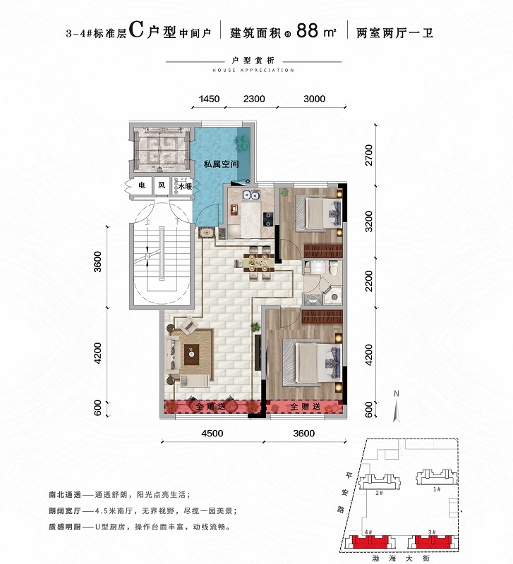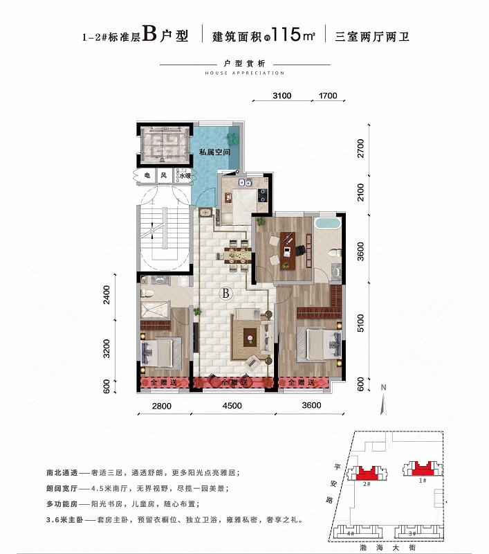 中天御品項目位于營口市渤海大街與平安路交會處,地處西市區(qū)核心位置,營口主城區(qū)的交通要道,地理位置十分優(yōu)越。行政配套遍布項目周邊,商業(yè)配套齊全滿足您日常購物所需。 項目占地面積1.6萬㎡,建筑面積3.7萬 ㎡,整體由4棟17層新中式雅居小高層組成,配有商鋪及車庫/車位,完全人車分流設計。 戶型種類齊全,面積區(qū)間從88平到118平,從兩室兩廳一衛(wèi)到三室兩廳兩衛(wèi)。全部戶型均為南北通透的五明戶型設計。