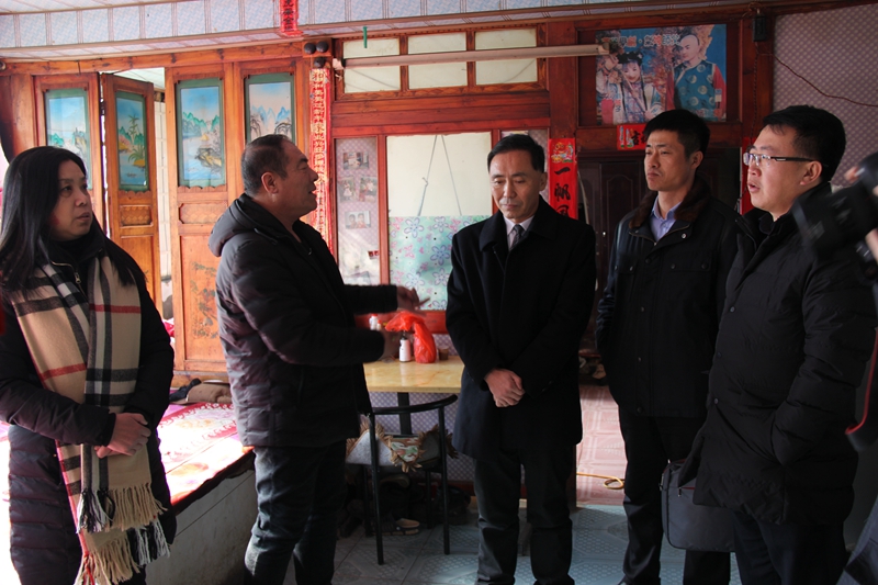 在閻書記的帶領(lǐng)下,慰問團(tuán)驅(qū)車走進(jìn)虎皮峪村的深山里,開始逐家走訪困難戶。首先來到貧困戶金大爺?shù)募遥鸫鬆斃习榛寄X血栓臥床十余年,金大爺需要常年護(hù)理老伴,家庭沒有經(jīng)濟(jì)收入,生活十分困難。金大爺接到慰問團(tuán)送來的1000元現(xiàn)金,當(dāng)場(chǎng)流下了熱淚,感謝中天集團(tuán)能夠惦記他們這樣的貧困戶,1000元現(xiàn)金可以購(gòu)買全部的年貨,這個(gè)春節(jié)一定會(huì)幸福開心。