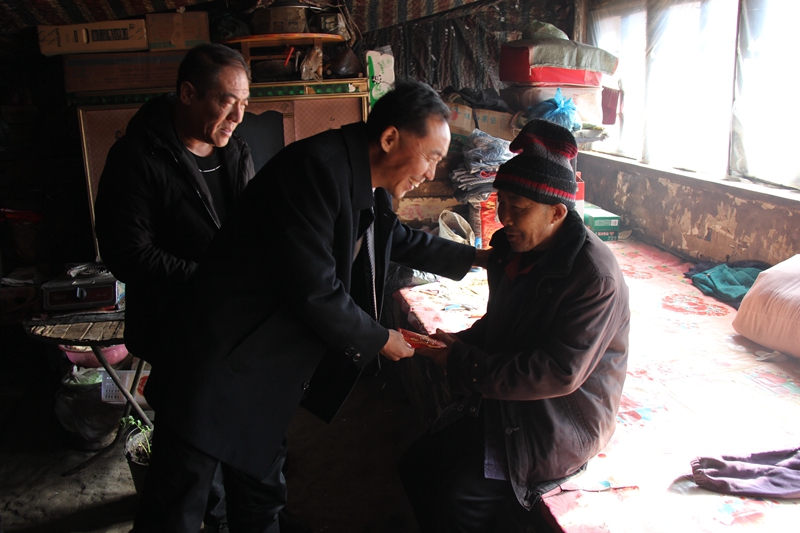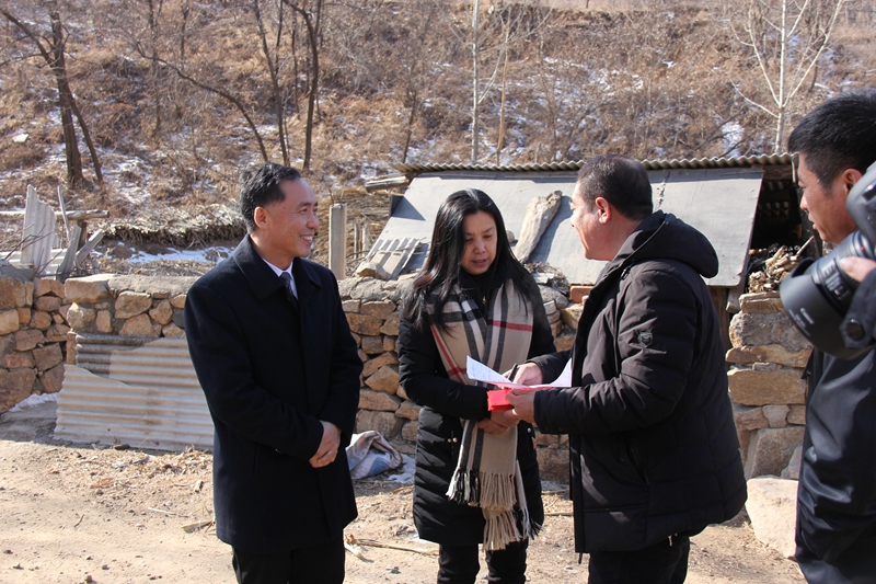 隨后,慰問團(tuán)徒步很遠(yuǎn)的山路,走進(jìn)了居住在山溝里的王大爺家。低矮的房子,房子前后就是大山,王大爺老倆口居住在這偏遠(yuǎn)的山溝里,家庭沒有任何經(jīng)濟(jì)收入,十分貧困,慰問團(tuán)人員看了無不心酸。許總親手送上慰問金,表達(dá)中天人對(duì)他們的問候,希望他們購(gòu)買年貨,好好過一個(gè)年。