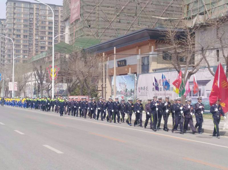 當(dāng)天中午12點整,來自中天御景華庭、中天壹品、中天君臨天下、中天尚品、中天桃花源、中天御景灣六個物業(yè)小區(qū)的員工,身著由物業(yè)公司配發(fā)的統(tǒng)一服裝,整齊地聚集在集團總部門前,整裝待發(fā),伴隨著物業(yè)公司總經(jīng)理王化啟一聲令下,徒步活動正式拉開序幕。隊伍浩浩蕩蕩,呼喊著嘹亮的口號,整齊地走在大街上,展現(xiàn)了中天物業(yè)人的良好形象。