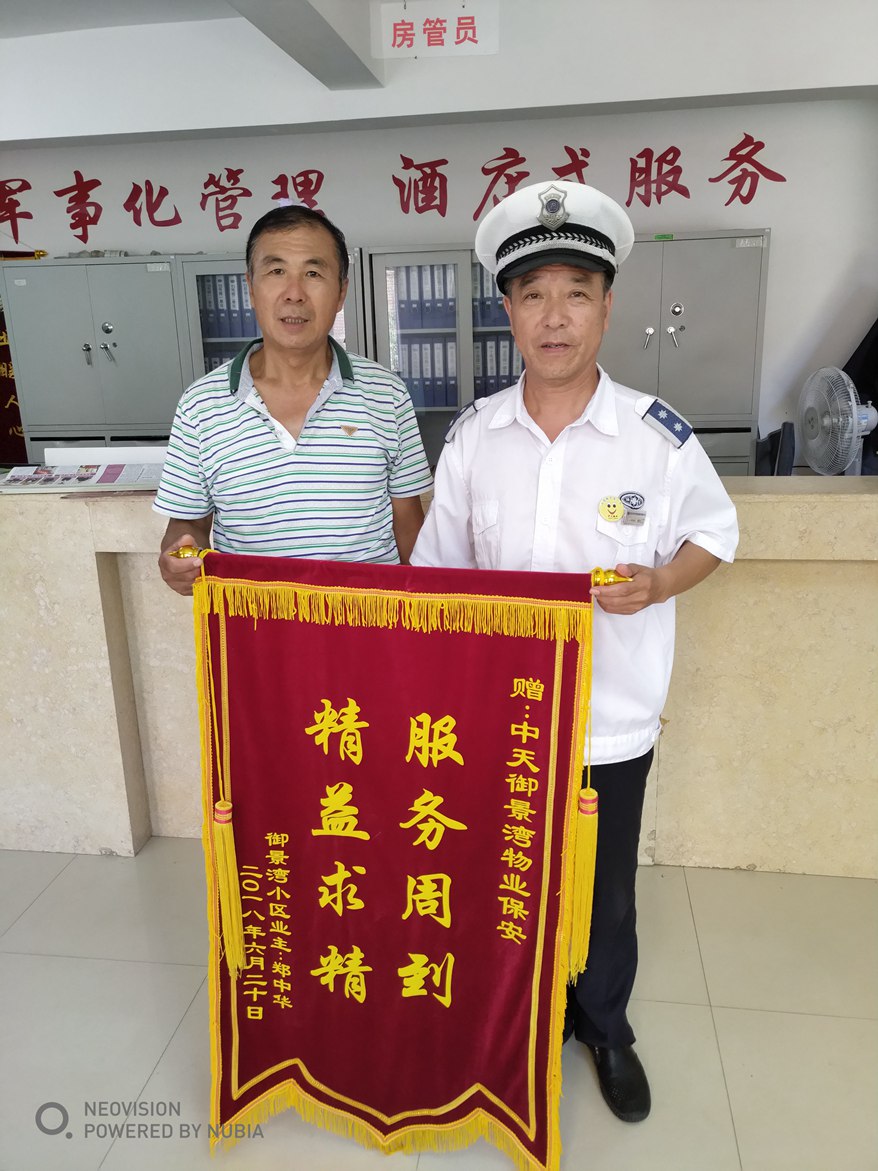 6月27日上午,御景灣小區(qū)13號(hào)樓業(yè)主鄭中華將一面寫有“服務(wù)周到,精益求精”的錦旗送到了物業(yè)辦公室。原來(lái)是一天晚飯后其患有精神疾病的孩子在園區(qū)遛彎時(shí),不慎丟失,來(lái)尋求物業(yè)幫助時(shí),當(dāng)班班長(zhǎng)楊世民見情況緊急,一邊安慰他,一邊安排各崗保安注意觀察出入人員,并調(diào)取監(jiān)控錄像尋找,并組織物業(yè)員工在孩子有可能出現(xiàn)的地方開展地毯式搜索,最終在晚上10點(diǎn)多鐘,在園區(qū)半地下車庫(kù)一個(gè)角落里發(fā)現(xiàn)了走失的孩子。
