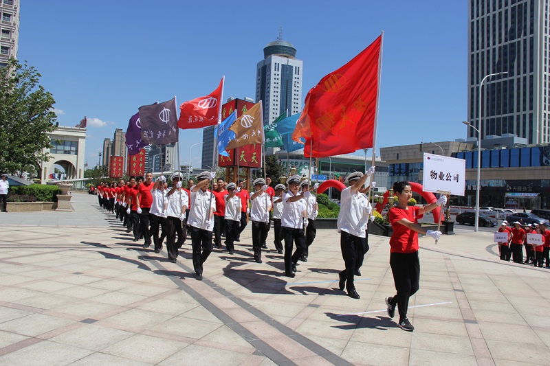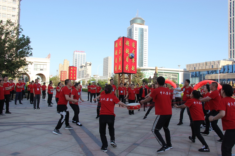 5月31日下午,中天集團(tuán)第三屆職工運(yùn)動(dòng)會(huì)如期舉行。只見(jiàn)在中天市府廣場(chǎng)上,彩旗飛揚(yáng),鑼鼓喧天,來(lái)自于集團(tuán)機(jī)關(guān)、天華公司、天泰公司、遼陽(yáng)公司、盤錦公司、萬(wàn)豪酒店、物業(yè)公司、農(nóng)貿(mào)公司、商業(yè)公司、建筑公司十支代表隊(duì)的300多名員工匯集在這里,釋放激情,揮灑汗水,盡情享受著中天集團(tuán)的體育盛宴。這不僅僅是一次風(fēng)貌的展示,也是中天集團(tuán)活力的展示,更是企業(yè)形象的大展示。