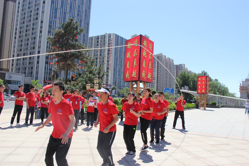 伴隨著于總一聲令下,比賽正式開始。本屆運(yùn)動(dòng)會(huì)共設(shè)8個(gè)團(tuán)體項(xiàng)目,包括集體跳繩、拔河、海底撈月、激情傳遞、團(tuán)結(jié)背靠背、協(xié)作過(guò)河、無(wú)敵風(fēng)火輪和眾星捧月。首先進(jìn)行的是集體跳繩項(xiàng)目,每隊(duì)8人,2人搖繩,6人開跳,1分鐘為限,次數(shù)多者為勝。盤錦公司在總經(jīng)理周春雷的帶領(lǐng)下,取得第一項(xiàng)比賽的冠軍,來(lái)了一個(gè)開門紅,集團(tuán)機(jī)關(guān)隊(duì)取得第二,物業(yè)公司和建筑公司并列第三。