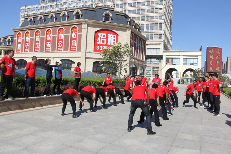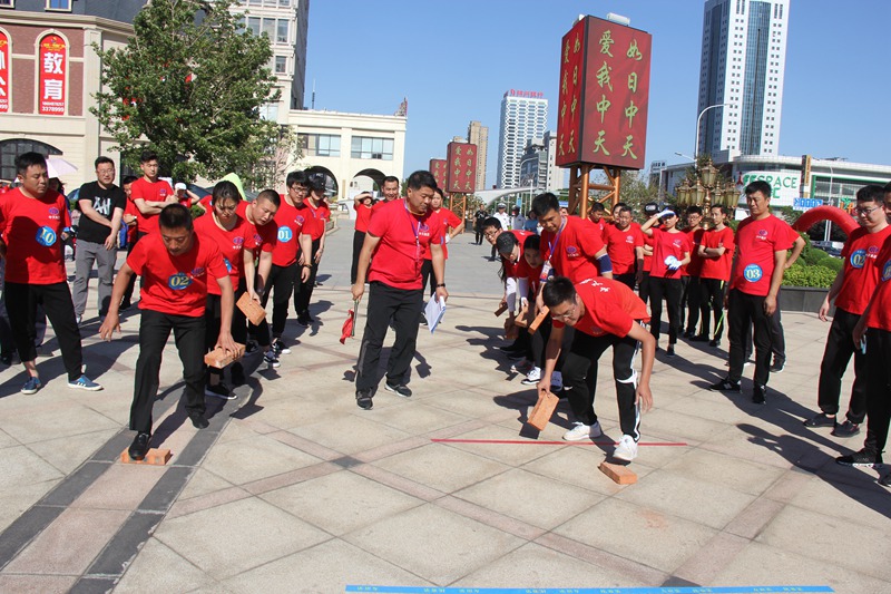 “協(xié)作過(guò)河”每隊(duì)5人六塊磚,從出發(fā)點(diǎn)到最后一名過(guò)河完畢,任何人腳不能落地,直至最后一個(gè)人一塊磚到達(dá)終點(diǎn)。這項(xiàng)比賽不僅需要合理安排好隊(duì)形,保持穩(wěn)定,還要講究遞磚的方法,以便節(jié)省時(shí)間。最終商業(yè)公司獲得了該項(xiàng)目的冠軍,天華公司和遼陽(yáng)公司取得第二、三名。