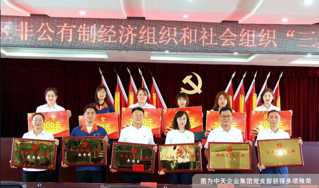 2021年6月29日,中共營口市西市區(qū)委組織部召開“兩新”組織表獎大會,表獎全區(qū)非公有制經(jīng)濟組織和社會組織“三星”黨支部,中天企業(yè)集團黨支部獲得“活力星”榮譽稱號。