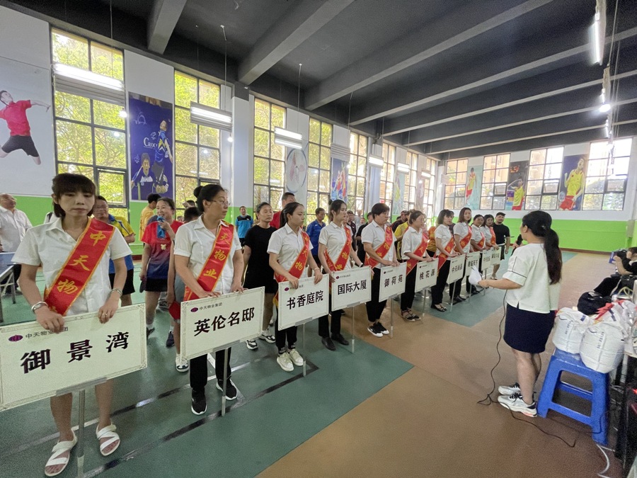8:30分至9點是運動員檢錄時間,物業(yè)公司細心準備了接待工作,檢錄完畢物業(yè)集團總經理王化啟向參賽選手致辭,隨后物業(yè)集團總經理助理富志剛帶領運動員進行5分鐘熱身運動,同時根據抽簽將對陣圖制作完畢,9點20分,比賽正式開始。