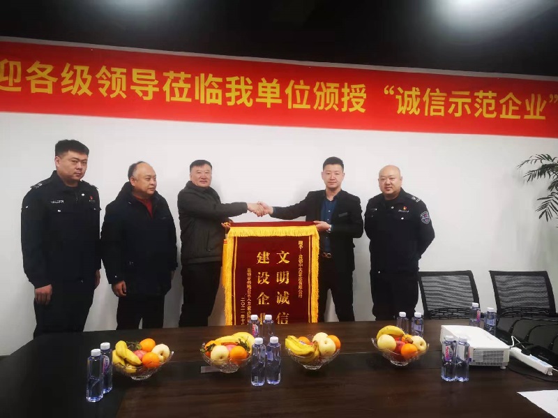 近日,盤錦市興隆臺區(qū)人力資源和社會保障局局長李慶,興隆臺區(qū)勞動監(jiān)察大隊柴助海主任等一行領(lǐng)導(dǎo)蒞臨中天企業(yè)集團盤錦城市公司,為企業(yè)頒發(fā)“2021年度興隆臺區(qū)誠信建設(shè)示范企業(yè)”榮譽牌匾。