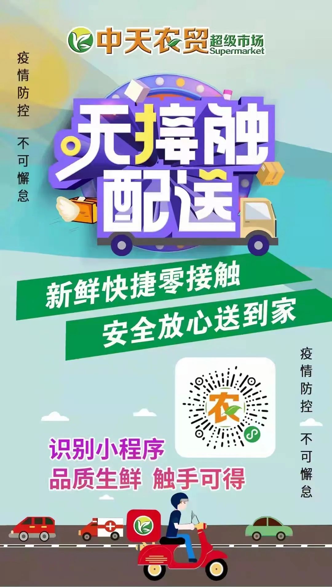 越是風(fēng)疾雨驟,越考驗(yàn)責(zé)任;越是關(guān)鍵時刻,越見證擔(dān)當(dāng)。在政府相關(guān)部門的大力協(xié)助下,在集團(tuán)各級領(lǐng)導(dǎo)、同事和兄弟公司的幫助下,在顧客的理解和支持下,中天農(nóng)貿(mào)人始終奔走在抗疫保供、服務(wù)民生的第一線,用他們微薄的力量,毅然承擔(dān)著保民生保供應(yīng)的社會責(zé)任和使命,同心協(xié)力,共克時艱,中天集團(tuán)與家鄉(xiāng)人民同舟共濟(jì),共待春來!
