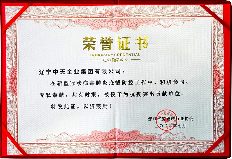 日前,營(yíng)口房地產(chǎn)行業(yè)協(xié)會(huì)授予中天集團(tuán)在新病毒肺炎疫情、攻克時(shí)艱,為抗疫突出貢獻(xiàn)單位”稱號(hào),頒發(fā)榮譽(yù)證書和紀(jì)念牌匾,防控工作中,積極參與、無(wú)私奉獻(xiàn)表獎(jiǎng)中天集團(tuán)所作出的貢獻(xiàn)。今年疫情發(fā)生以來(lái),集團(tuán)特別捐贈(zèng)50萬(wàn)元,并多次向社區(qū)一線送去慰問物質(zhì),同時(shí)集團(tuán)所屬物業(yè)各小區(qū)、中天酒店、中天農(nóng)貿(mào)市場(chǎng)等全方位為抗疫保障服務(wù),充分發(fā)揮了一個(gè)企業(yè)的擔(dān)當(dāng)作用,全社會(huì)抗擊疫情做出了貢獻(xiàn)。