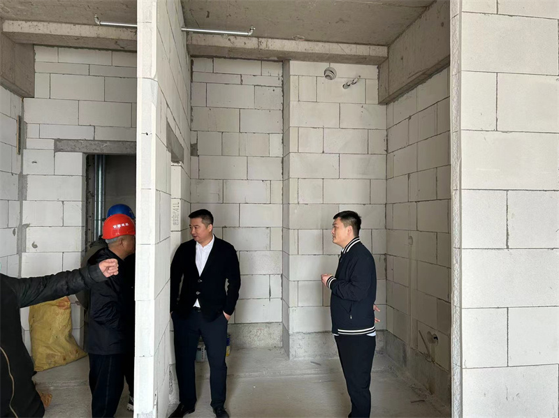 對公司在建項目的視察工作中,集團副總裁周春雷首先到達B-1#樓17層,討論現(xiàn)場使用砌塊及石膏抹灰工藝及隔音效果,并逐層向下巡視。之后來到9層查看酒店客房衛(wèi)生間改造,對酒店衛(wèi)生間改造后整體效果進行點評,后查看了酒店走廊的綜合管線排布并提出合理化建議。最后巡視了酒店宴會廳及大堂部分,對電梯門裝飾及電梯轎廂裝修提出問題并于效果圖進行對比并要求更改方案。副總裁認為現(xiàn)場的工作進度有所緩慢,項目部要及時督促施工方增加施工人員,在保證安全質(zhì)量的情況下,加快進度,要在業(yè)主要求的工期節(jié)點前完成所有工作。視察中,周春雷對項目部關(guān)于安全質(zhì)量方面做出的工作給予了充分的認可,認為工程管理中各項工作井井有條、穩(wěn)步推進、值得肯定。