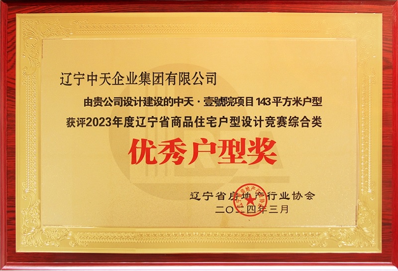 4月18日,在遼寧省房地產行業(yè)協(xié)會第六屆七次理事會上,由我公司自主設計的營口中天·壹號院項目143平戶型獲評2023年度遼寧省商品住宅戶型設計競賽綜合類優(yōu)秀戶型獎。