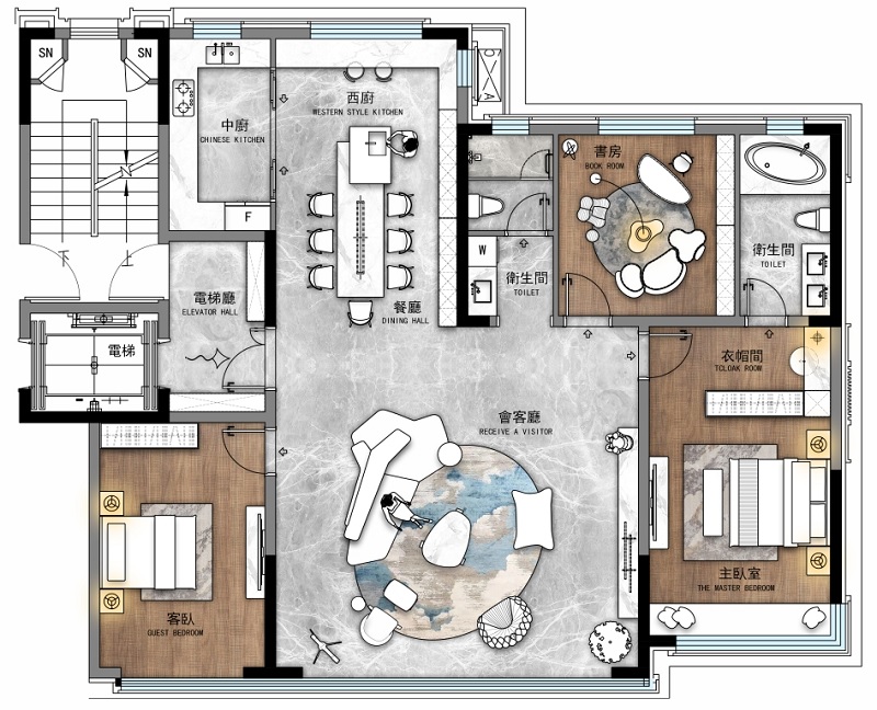 此戶型落地于營口,對于東北的四線城市來說,客戶更在乎房間的尺度,更喜歡“敞亮”的房子而不是干擾視線的小洄游空間,并且思維比較傳統(tǒng),不習慣北側入戶。根據(jù)項目所處地域以及周邊環(huán)境,結合目標人群的生活習慣,綜合考慮家庭全生命周期需求和后疫情時代人居生活的變化,圍繞寬廳、獨立電梯入戶、全明戶型、全幕立面等設計理念,打造出143平全產品類型的品質好戶型,滿足居住者的全周期居住需求。