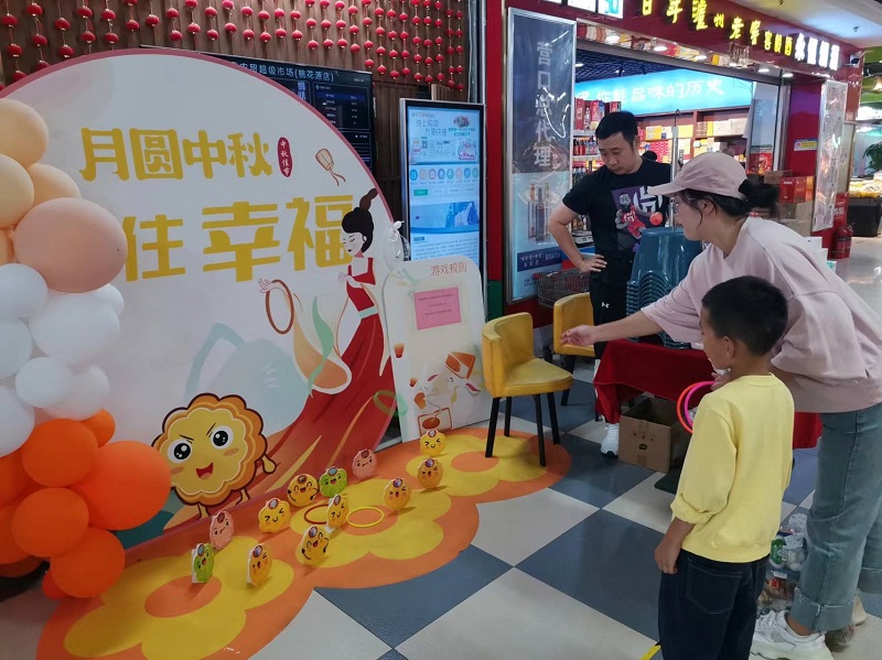 9月17日,一年一度的中秋佳節(jié)溫馨而至,為回饋長(zhǎng)久以來(lái)顧客們對(duì)中天農(nóng)貿(mào)的支持與厚愛(ài),中天農(nóng)貿(mào)在9月15日至9月17日節(jié)日期間舉辦了“開(kāi)心圈月餅 歡樂(lè)共團(tuán)圓”的活動(dòng),活動(dòng)期間,全場(chǎng)消費(fèi)達(dá)額66元的每一位顧客均可以在活動(dòng)現(xiàn)場(chǎng)領(lǐng)取三支幸福圓圈,現(xiàn)場(chǎng)鋪滿(mǎn)象征著團(tuán)圓的月餅道具,每一個(gè)道具都對(duì)應(yīng)相應(yīng)的節(jié)日禮品如砂鍋、調(diào)料瓶、盆、紙抽等等實(shí)用的小禮品,游戲規(guī)則就是套中你心儀的禮品,就可以現(xiàn)場(chǎng)拿走,即使顧客沒(méi)有套中也沒(méi)有關(guān)系,物業(yè)服務(wù)人員仍會(huì)給您補(bǔ)發(fā)一件貼心小禮物,保證每一位參與活動(dòng)的顧客朋友們,都能得到一份中天農(nóng)貿(mào)送出的禮品祝福。