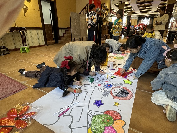 鋪開長(zhǎng)長(zhǎng)的畫卷,一個(gè)個(gè)小畫家全身心投入盡情繪畫。迎風(fēng)飄揚(yáng)的國(guó)旗,是偉大祖國(guó)的標(biāo)志與象征;雄偉壯麗的天安門,是對(duì)祖國(guó)偉大建筑物的崇拜;絢麗多彩的氣球與愛心,寄托著孩子們對(duì)祖國(guó)媽媽生日的祝福。孩子們用五彩斑斕的色彩繪制起波瀾壯闊的時(shí)代畫卷,一筆一畫深情地表達(dá)出對(duì)黨的感恩之情和對(duì)祖國(guó)的美好祝愿。家長(zhǎng)們也積極參與其中,用欣賞的眼光關(guān)注著孩子們的一涂一畫,偶爾輕聲指導(dǎo),偶爾幫忙涂抹色彩。