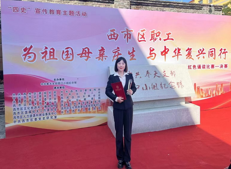 此次比賽采取誦讀紅色經(jīng)典的形式,歌頌偉大祖國,展示西市區(qū)機(jī)關(guān)干部和職工在黨的領(lǐng)導(dǎo)下跨越趕超的精神,以及在全面建設(shè)社會主義現(xiàn)代化國家新征程上闊步前行、奮力譜寫中國現(xiàn)代化精彩篇章的堅定決心。經(jīng)過前期預(yù)賽的激烈角逐,共有16個作品晉級決賽。由中天集團(tuán)選送的作品——農(nóng)商公司綜合管理部經(jīng)理盧世蓮誦讀的《黨的贊歌》,在眾多作品中脫穎而出,盧經(jīng)理的誦讀展示了中天集團(tuán)全體干部職工擔(dān)當(dāng)實干、拼搏向上的精神風(fēng)貌,獲得評委的一致好評,獲得三等獎。