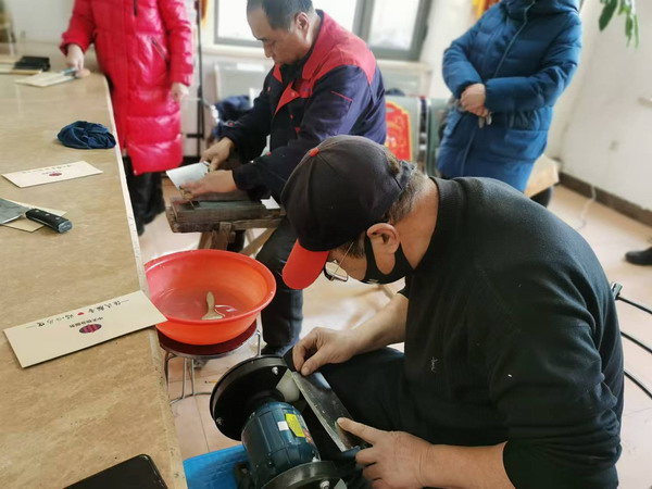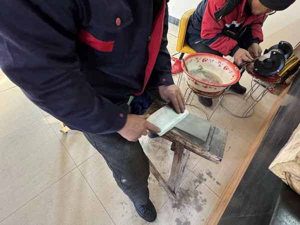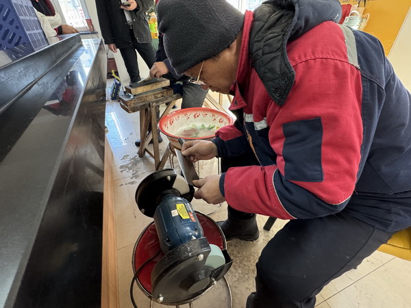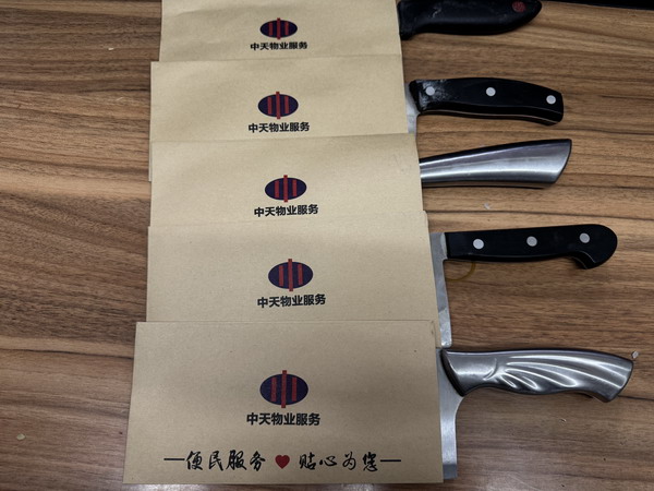 寒冷的天氣也阻擋不住業(yè)主們參加活動的熱情,他們拿出家里的菜刀、砍刀、剔骨刀、剪刀、西餐刀……等各式刀具來到服務(wù)中心的便民服務(wù)點(diǎn)排隊(duì)磨刀。在磨刀等候的閑暇之余業(yè)主們還可以嘮著家常,拉近了彼此之間的距離。物業(yè)工作人員為業(yè)主的每把刀具上貼好樓號房號,做好登記。
