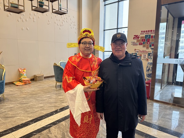 農(nóng)歷正月初五,民間也俗稱“破五”是迎財(cái)神的日子。隨著春節(jié)的喜慶氛圍日益濃厚,中天物業(yè)特別籌劃“迎財(cái)神”活動(dòng),客服中心工作人員化身“財(cái)神爺”,為業(yè)主送上新春的祝福!物業(yè)工作人員頭戴花冠,身穿紅袍,手捧金元寶,將金幣、元寶、金條等各種形狀的巧克力和糖果放在金元寶里送給業(yè)主,寓意財(cái)?shù)?、福運(yùn)到!在這個(gè)充滿喜慶的日子里,我們的財(cái)神爺穿梭在小區(qū)的每一個(gè)角落,為業(yè)主們送上甜蜜的糖果和誠(chéng)摯的祝福