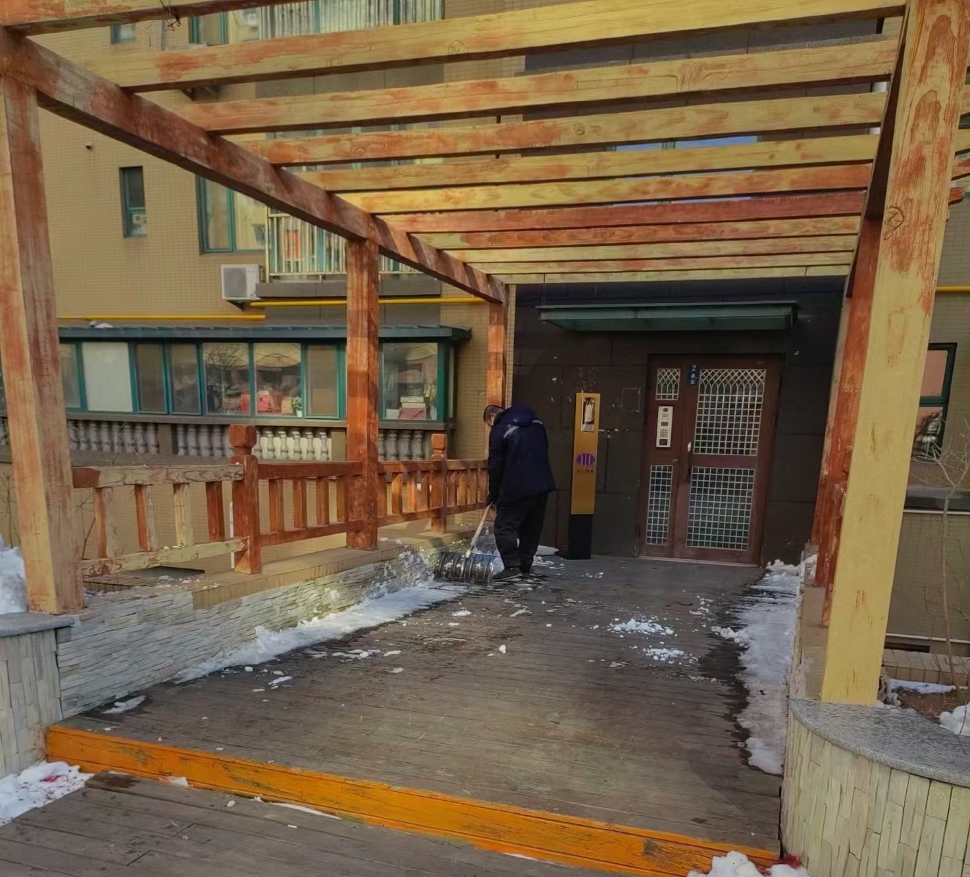 1月26日晚間,在迎接新春腳步的氛圍中,美麗的夜空上演了一場(chǎng)不平凡的雪景,如同天降的白色使者,瞬間將這座城市裝點(diǎn)得銀裝素裹。物業(yè)人秉承著“雪就是命令”的服務(wù)理念,早上6點(diǎn)30分盡管還沒(méi)有到上班時(shí)間,但是已經(jīng)全員到崗,熱火朝天有序進(jìn)行掃雪工作。