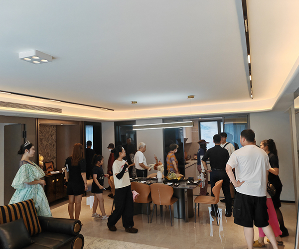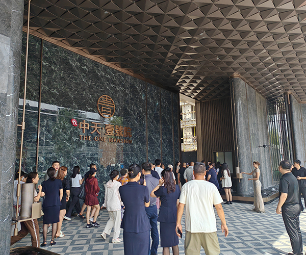 儀式現(xiàn)場(chǎng),熱情高漲的客戶早已匯聚于這座流光溢彩的東大門前。以名貴理石精工筑就、星空頂熠熠生輝、水幕墻靈動(dòng)瀉玉、噴泉水系恭迎貴賓的“星幕尊邸門”,其本身即是歸家尊崇儀式的開篇序章,成為令人矚目的視覺(jué)地標(biāo)。人群中,既有開盤即購(gòu)房的業(yè)主,滿懷憧憬前來(lái)借鑒設(shè)計(jì)靈感,為未來(lái)愛(ài)家描繪藍(lán)圖;亦有眾多意向濃厚的準(zhǔn)業(yè)主,翹首以盼親身體驗(yàn)升級(jí)品質(zhì),為理想生活尋覓最契合的空間載體。