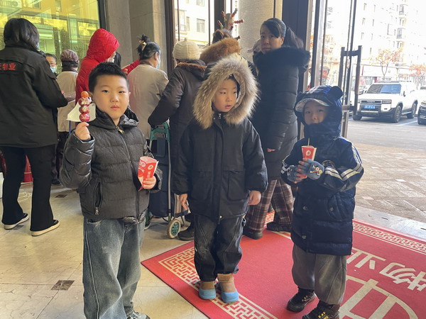 活動現(xiàn)場熱鬧非凡,業(yè)主們聞訊紛紛前來。大人和孩子們的臉上都洋溢著喜悅的笑容,大家有序排隊領(lǐng)取冰糖葫蘆。剛拿到手的冰糖葫蘆還帶著糖衣的脆響,咬上一口,酸甜的山楂果肉在口中化開,瞬間驅(qū)散了冬日的寒冷。工作人員一邊分發(fā),一邊與業(yè)主們親切交談,詢問大家的生活需求,傾聽大家對物業(yè)服務(wù)的建議,現(xiàn)場處處充滿著歡聲笑語。