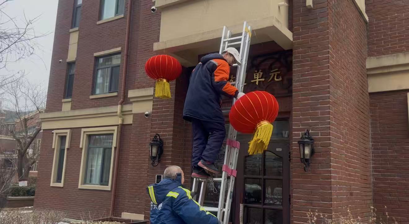 此次裝扮除了樓宇門(mén)頭,還在小區(qū)主干道、休閑廣場(chǎng)等區(qū)域,陸續(xù)懸掛近百盞紅燈籠,并鋪設(shè)數(shù)千米彩燈,打造“白天看燈籠,夜晚賞彩燈”的節(jié)日景致。不少業(yè)主路過(guò)裝扮現(xiàn)場(chǎng),紛紛拿出手機(jī)記錄這喜慶的畫(huà)面,直言“看著紅燈籠和彩燈,元旦的味道一下子就濃了”。