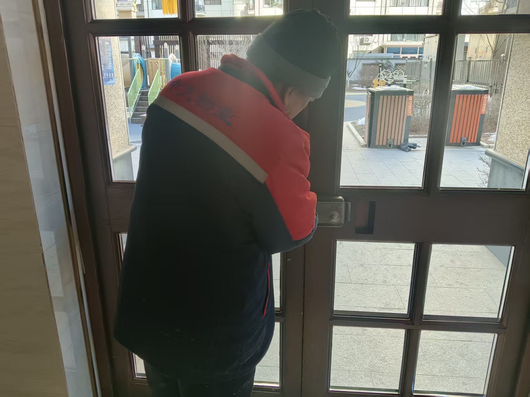 進(jìn)戶大堂門是小區(qū)的“門面擔(dān)當(dāng)”,更是守護(hù)業(yè)主安全的第一道防線。為解決部分樓棟大堂門存在的開關(guān)卡頓、閉合不嚴(yán)、五金件磨損等問(wèn)題,1月起書香庭院物業(yè)服務(wù)中心啟動(dòng)專項(xiàng)維修行動(dòng),以精細(xì)施工煥新歸家體驗(yàn),用責(zé)任與匠心筑牢居住安全屏障。