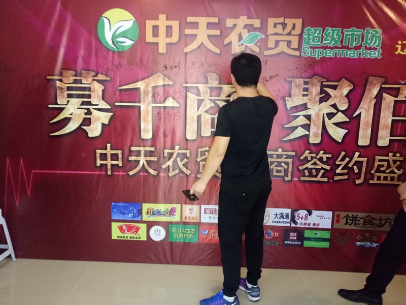 2017年8月10日中天農(nóng)貿(mào)超級(jí)市場(chǎng)遼陽(yáng)御品店與廠商和客商簽約大會(huì),在遼陽(yáng)中天御品SOHO會(huì)議室舉行,早7點(diǎn)整全體員工就已經(jīng)整裝待發(fā),根據(jù)安排各守崗位等待著商戶的到來(lái),9點(diǎn)時(shí)中天集團(tuán)領(lǐng)導(dǎo)、各地區(qū)分公司負(fù)責(zé)人與中天農(nóng)貿(mào)合作伙伴齊聚中天,共同商定遼陽(yáng)中天農(nóng)貿(mào)超級(jí)市場(chǎng)簽約制度與以后發(fā)展計(jì)劃,現(xiàn)場(chǎng)氣氛火爆。