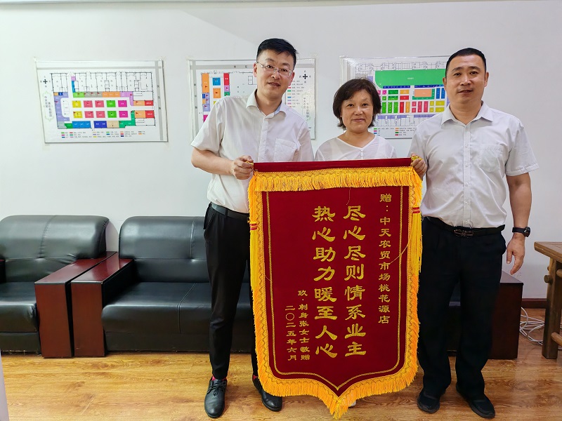 中天農(nóng)貿(mào)市場商戶向管理辦公室贈(zèng)送錦旗